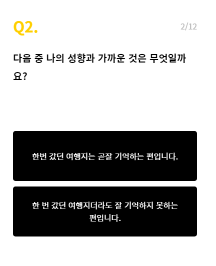해당 테스트는 MBTI 성격유형부터 여행 스타일을 기반으로