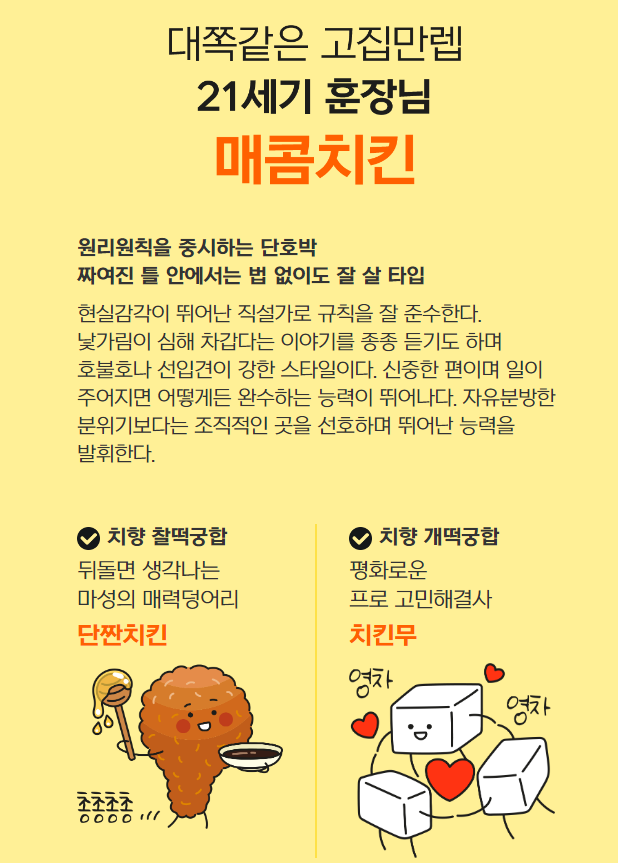 치킨으로 성향을 알아본다는 점에서 흥미로웠습니다