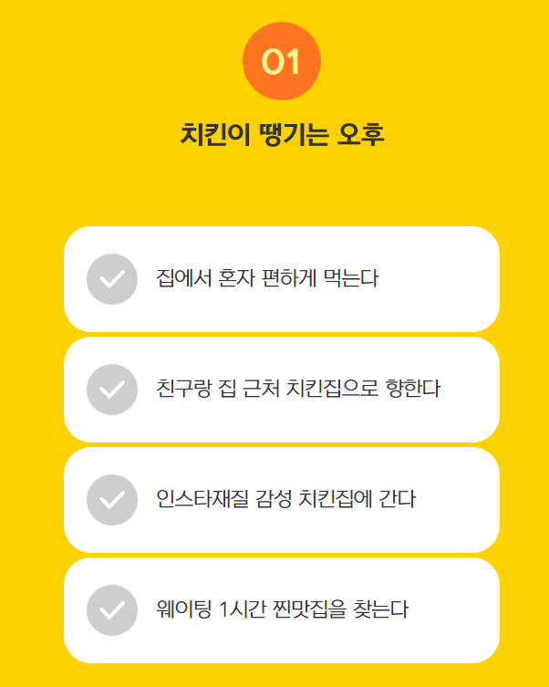 테스트 시작화면에 각 치킨의 특징을 살린