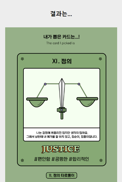 퍼스널 타로 테스트를 가지고왔습니다