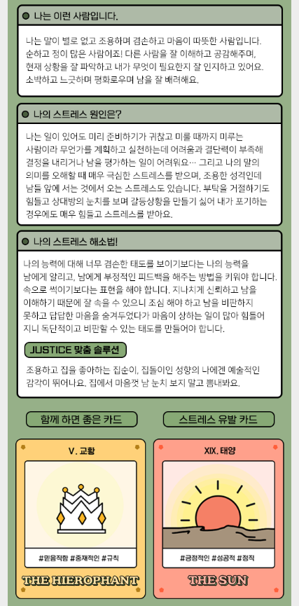 퍼스널 타로 테스트를 가지고왔습니다