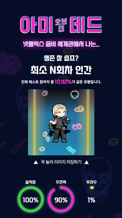 습격을 당해 좀비로 살아갈지 알아보는 테스트예요