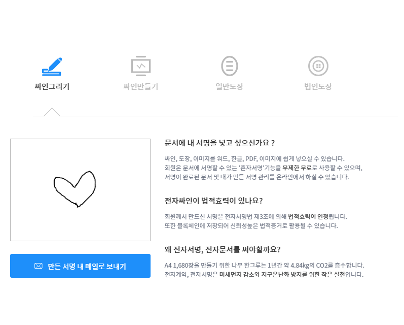 친환경 무료 전자서명 서비스. 비회원도 서명가능, 법적효력 인증, 개인신분인증 및 복수발송 가능